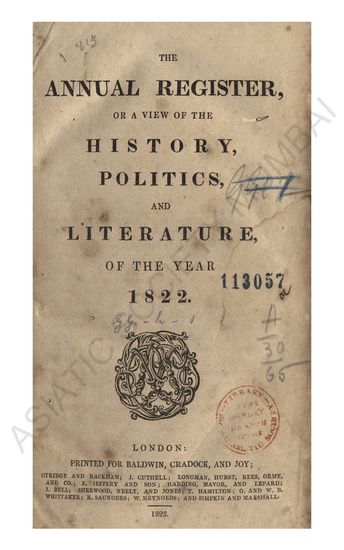 Annual register : or a view of the history, politics, and literature, for the year 1822.