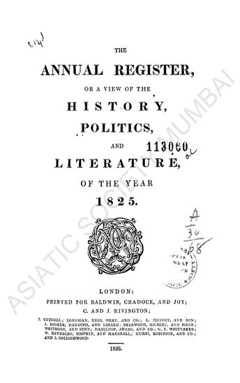 Annual register : or a view of the history, politics, and literature, for the year 1825.