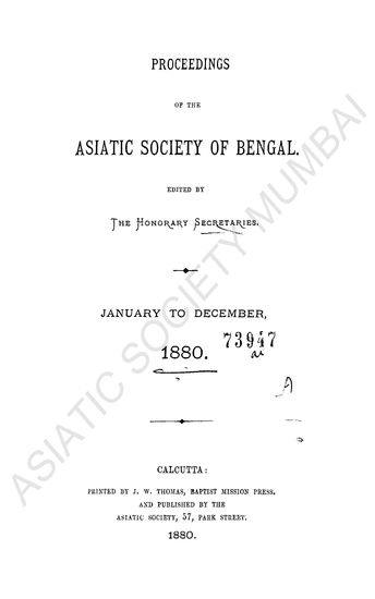 Proceedings of the Asiatic Society of Bengal, January to December, 1880.