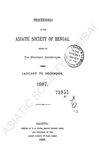 Proceedings of the Asiatic Society of Bengal, January to December, 1887.