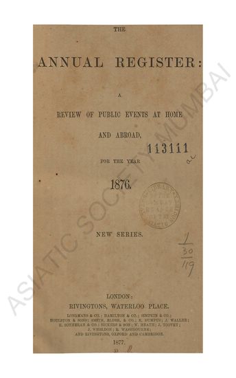 Annual register : a review of public events at home and abroad, for the year 1876.