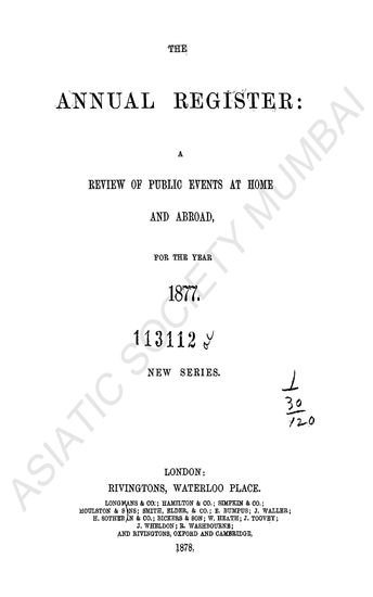 Annual register : a review of public events at home and abroad, for the year 1877.