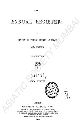 Annual register : a review of public events at home and abroad, for the year 1878.