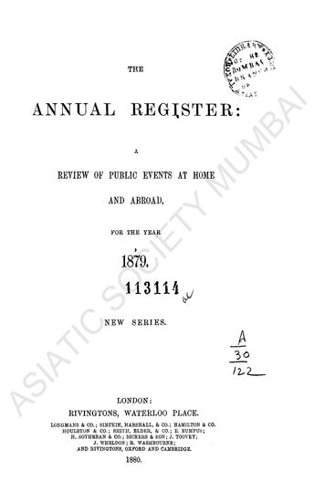Annual register : a review of public events at home and abroad, for the year 1879.