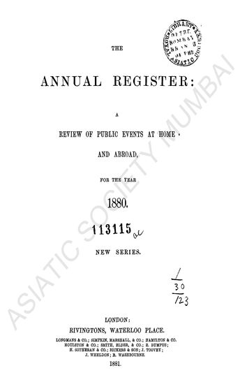 Annual register : a review of public events at home and abroad, for the year 1880.