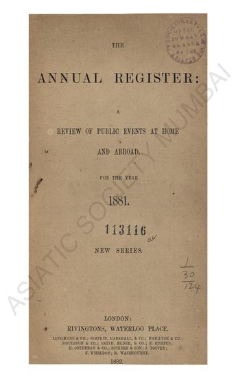 Annual register : a review of public events at home and abroad, for the year 1881.