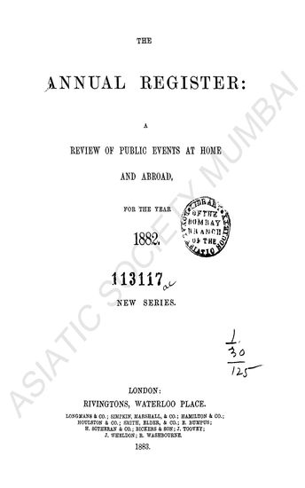 Annual register : a review of public events at home and abroad, for the year 1882.
