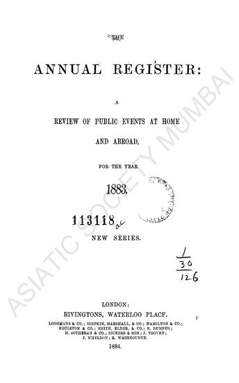 Annual register : a review of public events at home and abroad, for the year 1883.