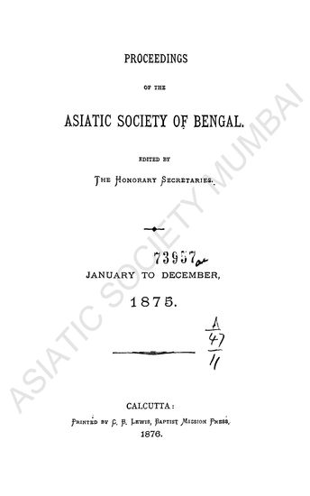 Proceedings of the Asiatic Society of Bengal, January to December, 1875.