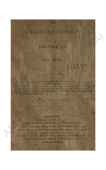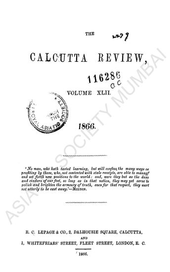 Calcutta Review., Vol. XXXVII, September-December, 1861.