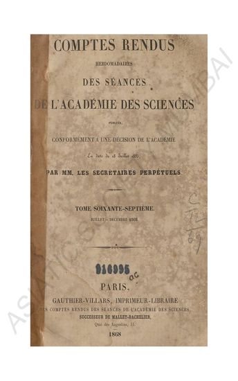 Comptes rendus hebdomadaires des séances de l'Académie des sciences.