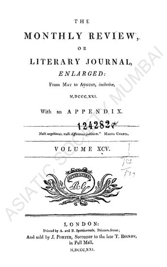 Monthly Review; or Literary Journal, Enlarged: From May to August, Inclufive, 1821. With an Appendix. Vol XCV.