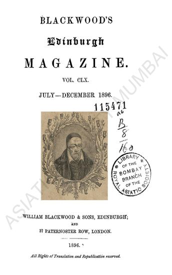 Blackwood's Edinburgh Magazine. Vol CLX. July- December, 1896.