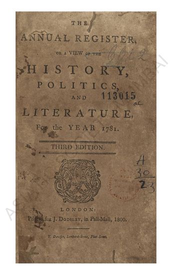 Annual register : or a view of the history, politics, and literature, for the year 1781.