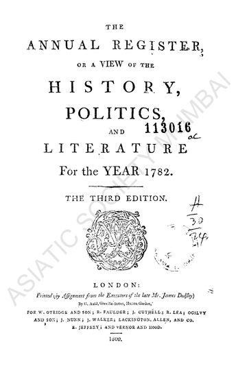 Annual register : or a view of the history, politics, and literature, for the year 1782.