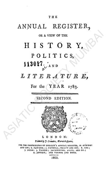 Annual register : or a view of the history, politics, and literature, for the year 1783.