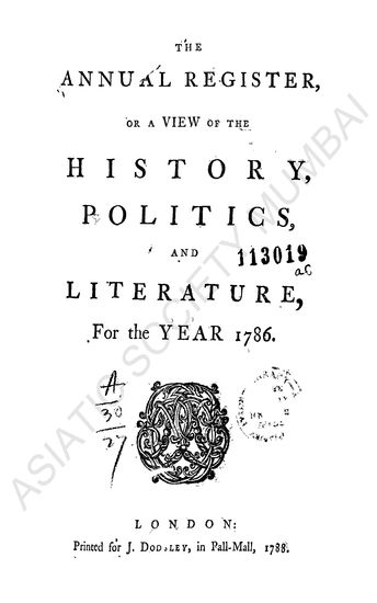 Annual register, or, A view of the history, politics, and literature for the years, 1784 and 1785.