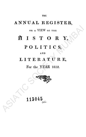 Annual register : or a view of the history, politics, and literature, for the year 1812.