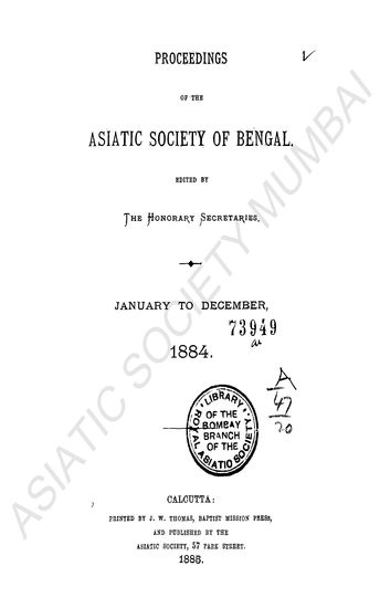Proceedings of the Asiatic Society of Bengal, January to December, 1884.