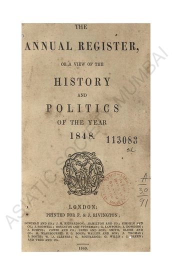 Annual register : or a view of the history, politics, and literature, for the year 1848.