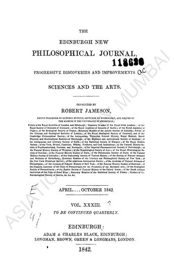 Edinburgh New Philosophical journal Exhibiting a View of the Progressive Discoveries and Improvements in the Sciences and the Arts. April… October 1842. Vol XXXIII.