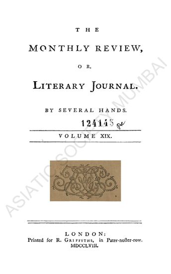 Monthly Review; or Literary Journal. By Several Hannds. Vol. XIX.