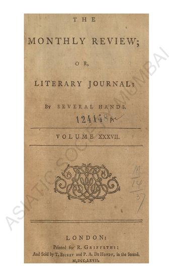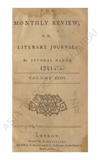 Monthly Review; or Literary Journal. By Several Hannds. Vol. XXXVII.
