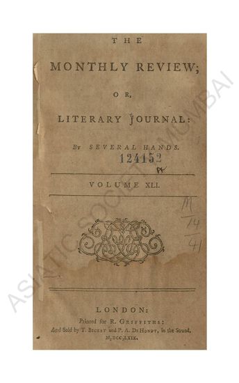 Monthly Review; or Literary Journal. By Several Hannds. Vol. XLI.