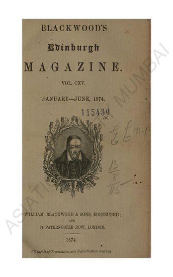 Blackwood's Edinburgh Magazine. Vol CXV. January- June, 1874.