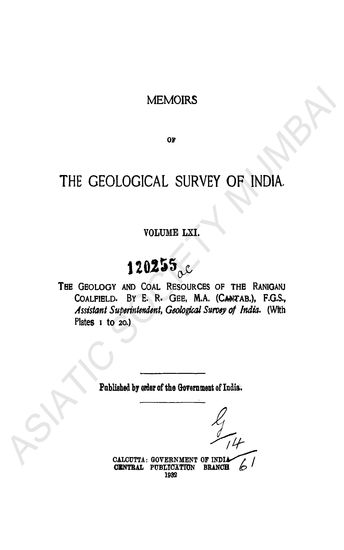 Memoirs of The Geological Survey of India, Volume LXXII. Part 1.