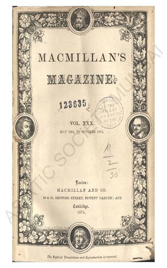 Macmillans Magazine. Vol. XXX. May, 1874 - October, 187 ...