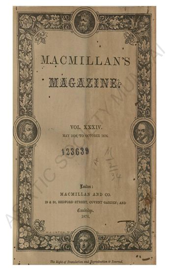 Macmillans Magazine. Vol. XXXIV. May, 1876 - October, 1 ...
