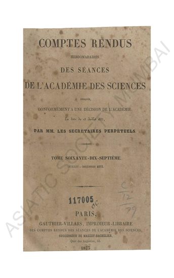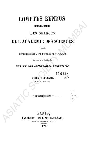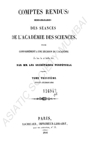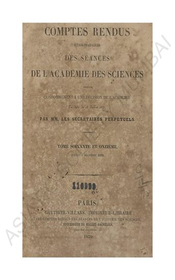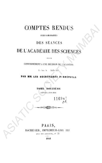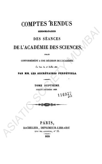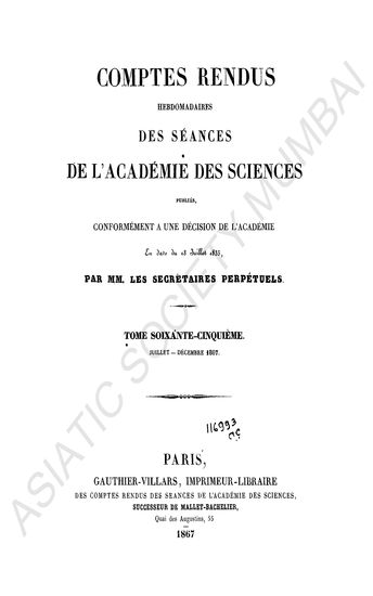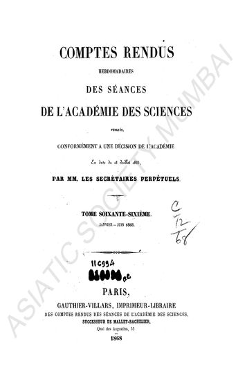 Comptes rendus hebdomadaires des séances de l'Académie des sciences.