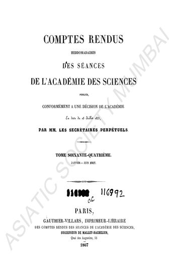Comptes rendus hebdomadaires des séances de l'Académie ...