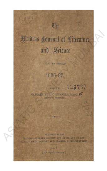 Madras Journal of Literature and Science. For the Session 1886-87.