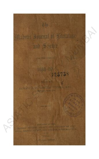 Madras Journal of Literature and Science. For the Session 1888-89.