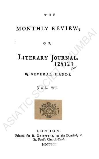 Monthly Review; or Literary Journal. By Several Hannds. Vol. VIII.
