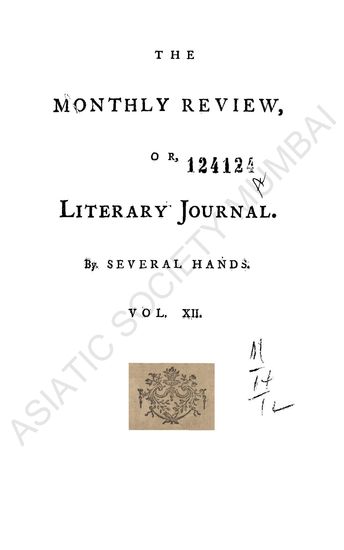 Monthly Review; or Literary Journal. By Several Hannds. Vol. XII.
