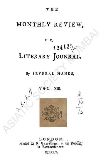 Monthly Review; or Literary Journal. By Several Hannds. Vol. XIII.