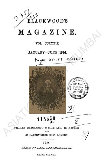 Blackwood's Magazine. Vol CCXXXIX. January- June, 1936.