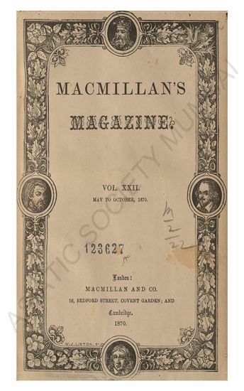 Macmillans Magazine. Vol. XXII. May- October, 1870.