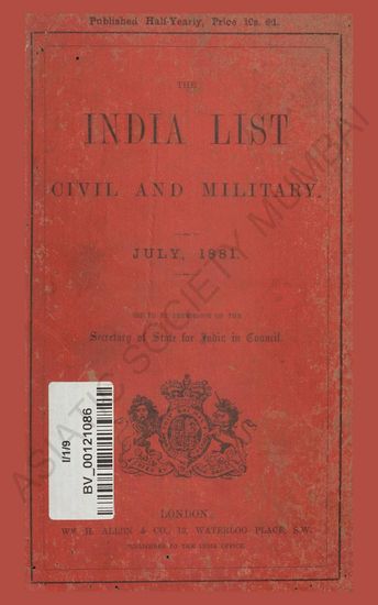 India List Civil and Military. July, 1881.