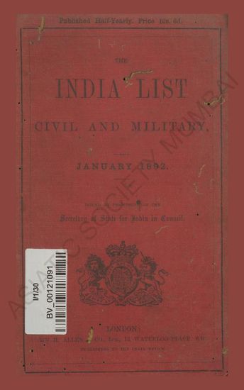 India List Civil and Military. January, 1892.