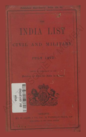 India List Civil and Military. July, 1892.
