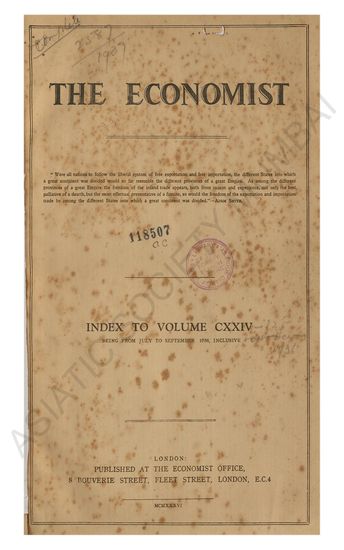 Economist Index to Volume CXXIV. Being From July to September, 1936, Inclusive.