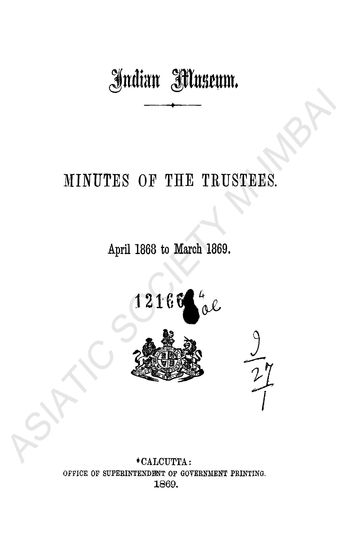 Indian Museum Minutes of the Trustees. April 1869 to Ma ...