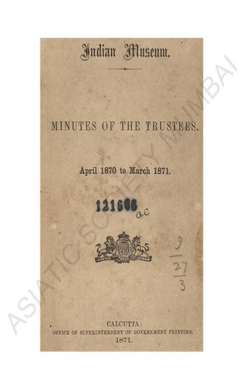 Indian Museum Minutes of the Trustees. April 1870 to March 1871.