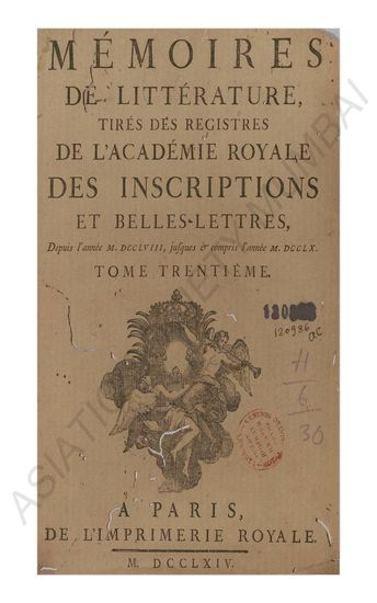 Memoires de Litterature Tirez des Registres de L' Academie Royale des Inscriptions et Belles Lettres. Vol Thirtieth.