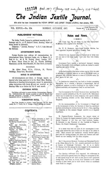 Indian Textile Journal. Vol XXVIII., October 1917...