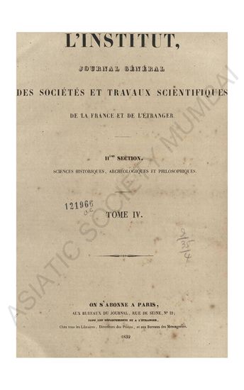 L'Institut, Journal Universel Des Sciences et Des Societes Savantes en France et A L' Etranger. Vol IV.